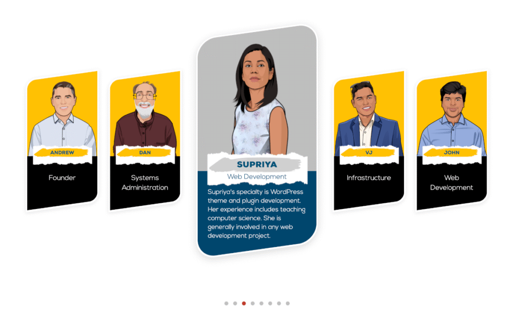 The carousels are built from scratch using vanilla javascript supported by custom post types.